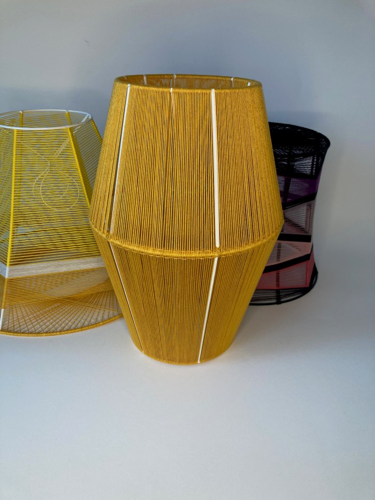 Hekling, tufting og makrame er også teknikker som brukes for å utforske form og farge.